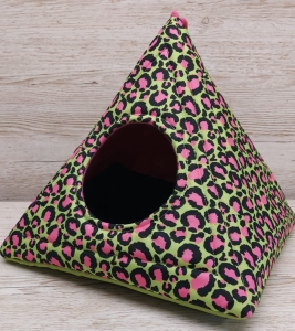 Domek Piramida 30x30 - rewolucyjne legowisko cętki wzór wodoodporny z poduszką minky (1) (1)