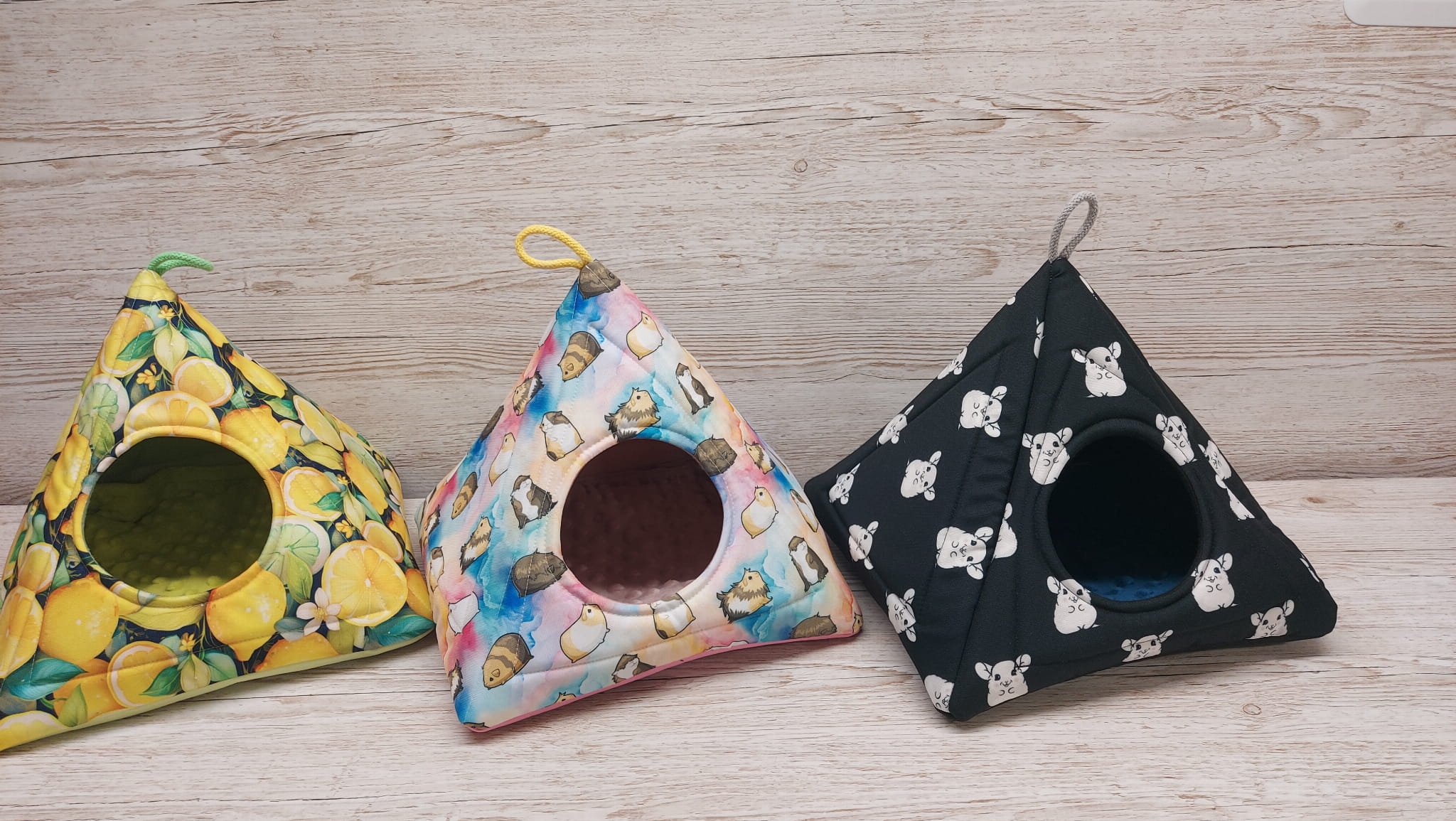 Domek Piramida to połączenie innowacyjnego designu z funkcjonalnością. Większa podstawa 30x30 cm sprawia, że jest idealny dla większych świnek morskich, małych królików czy innych gryzoni potrzebujących więcej przestrzeni.