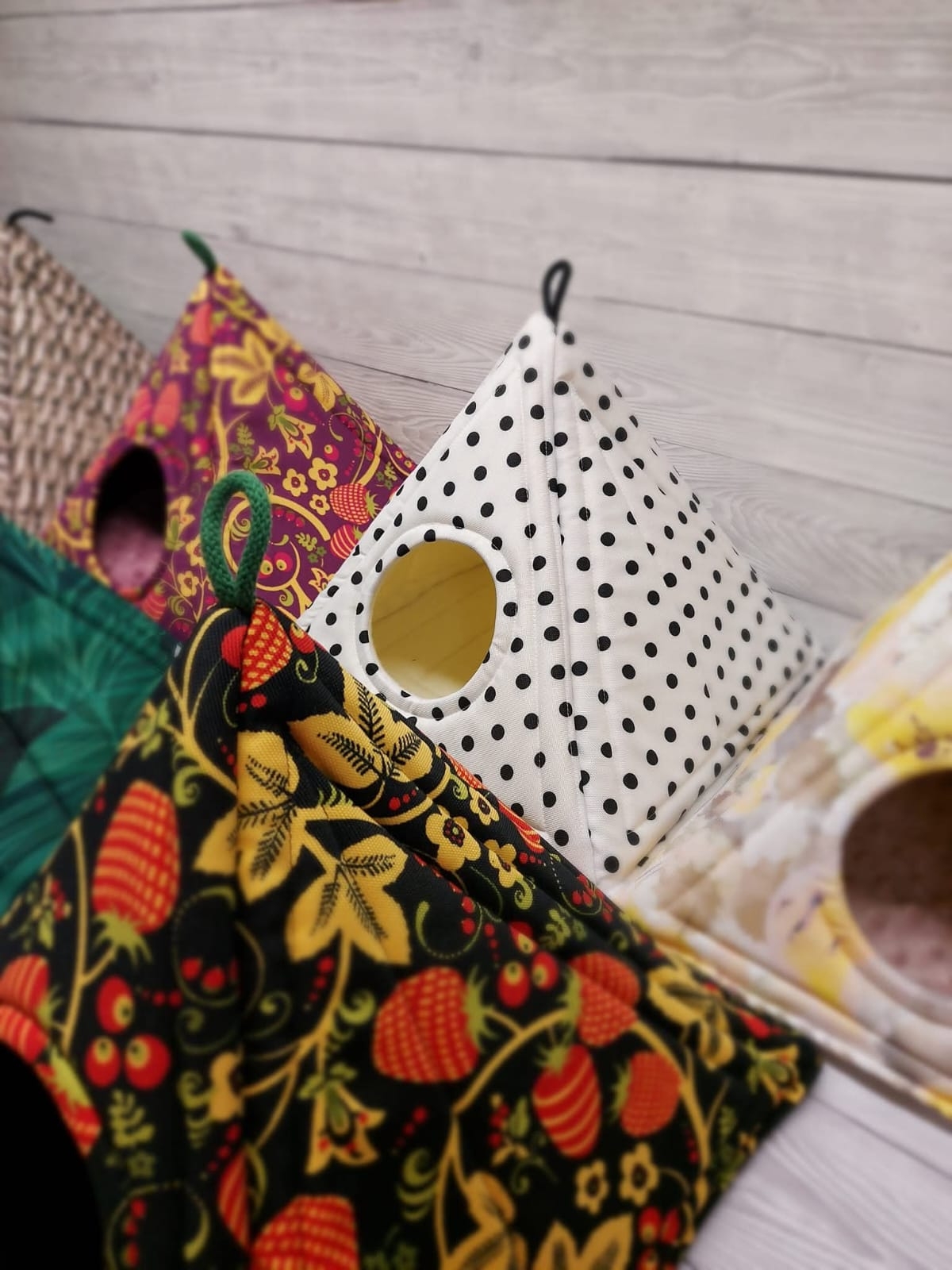 Wodoodporny materiał zewnętrzny oznacza, że domek będzie wyglądał jak nowy przez bardzo długi czas, a miękki polar wewnątrz zapewni komfort i przytulność. Możliwość zawieszenia daje dodatkowe opcje aranżacji klatki.