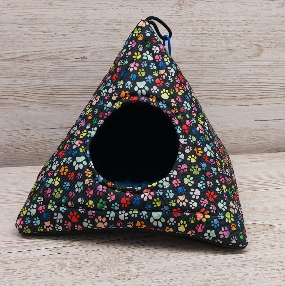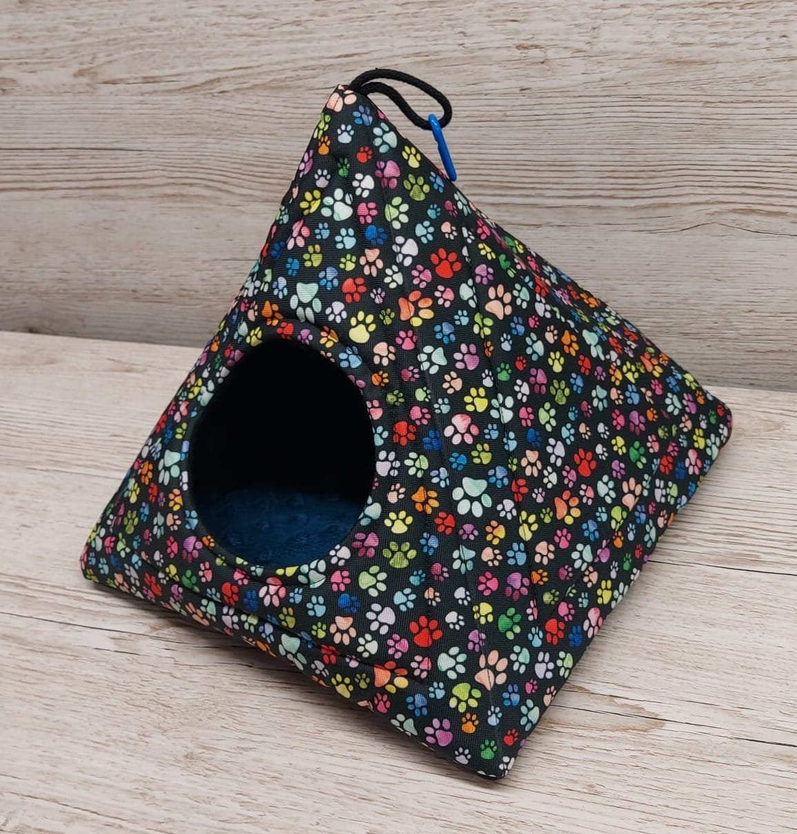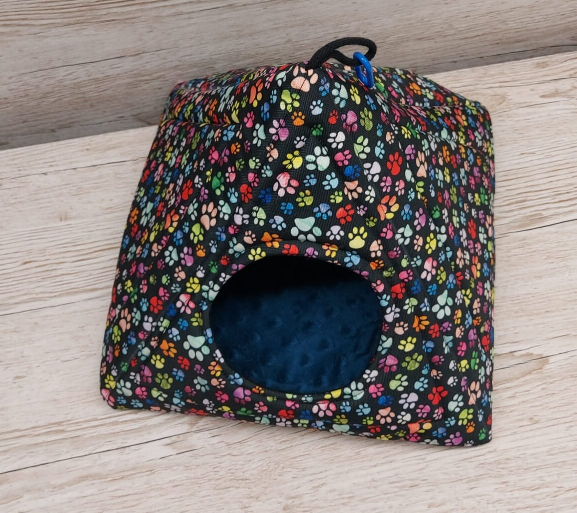 Domek Piramida 30x30 - rewolucyjne legowisko łapki wzór wodoodporny z poduszką minky