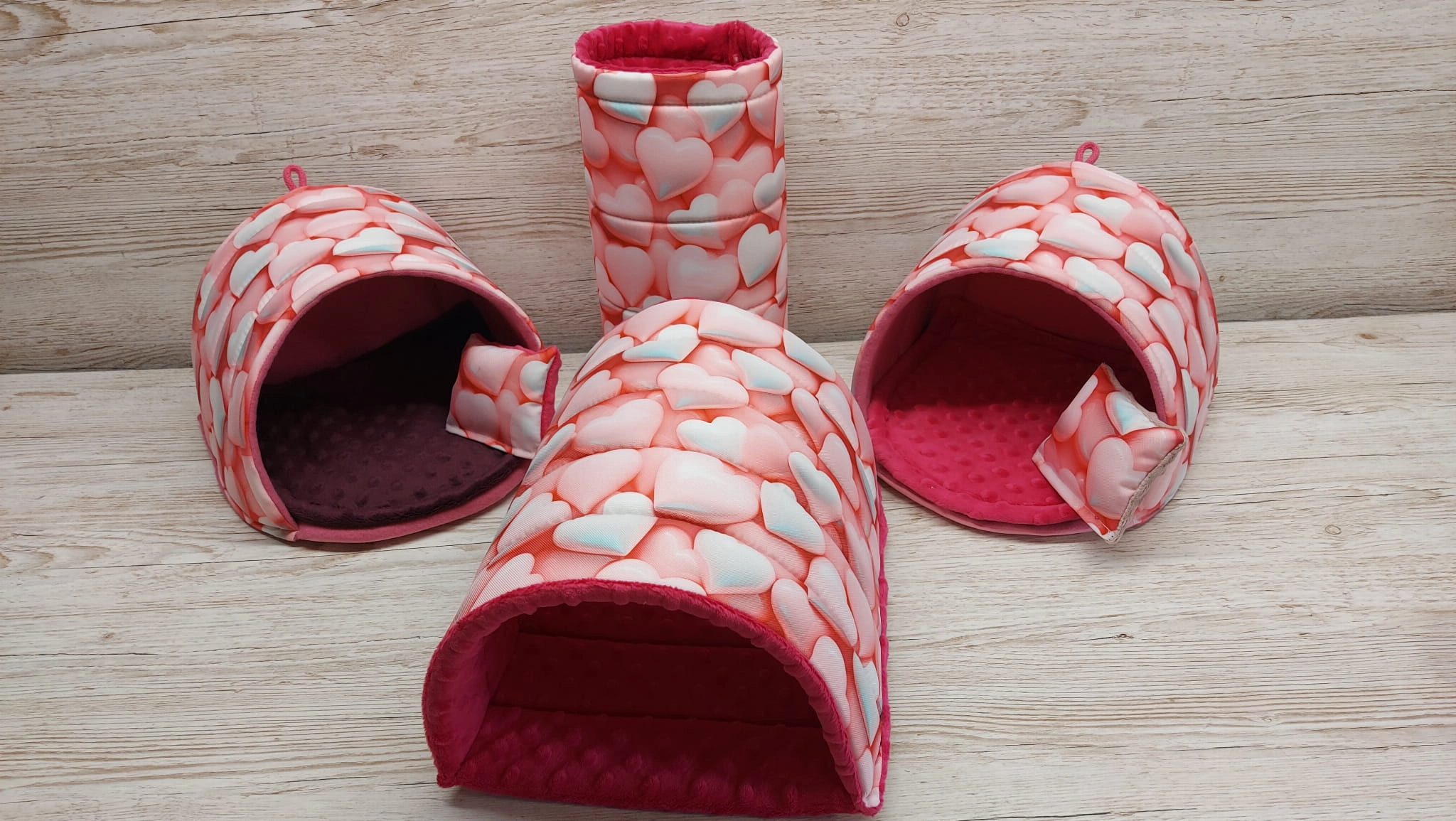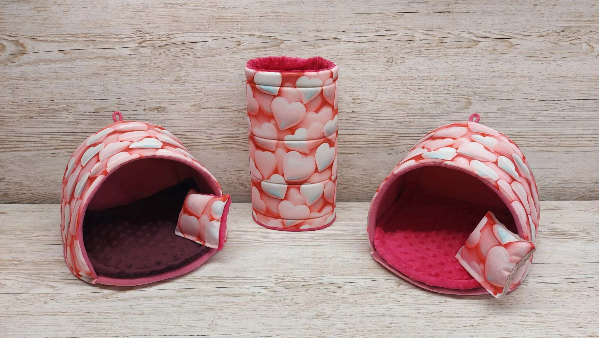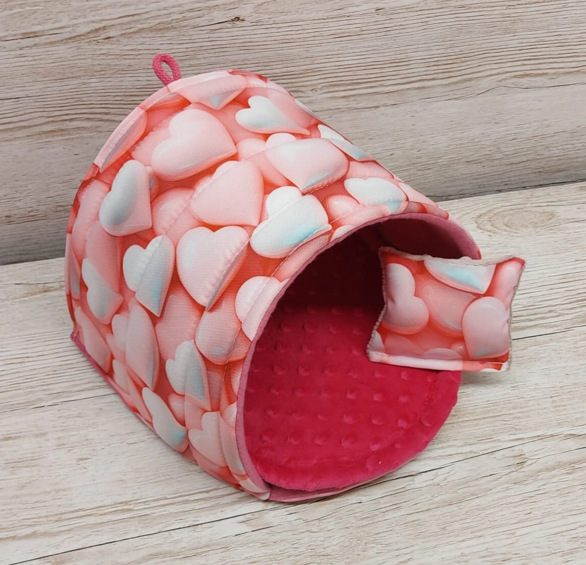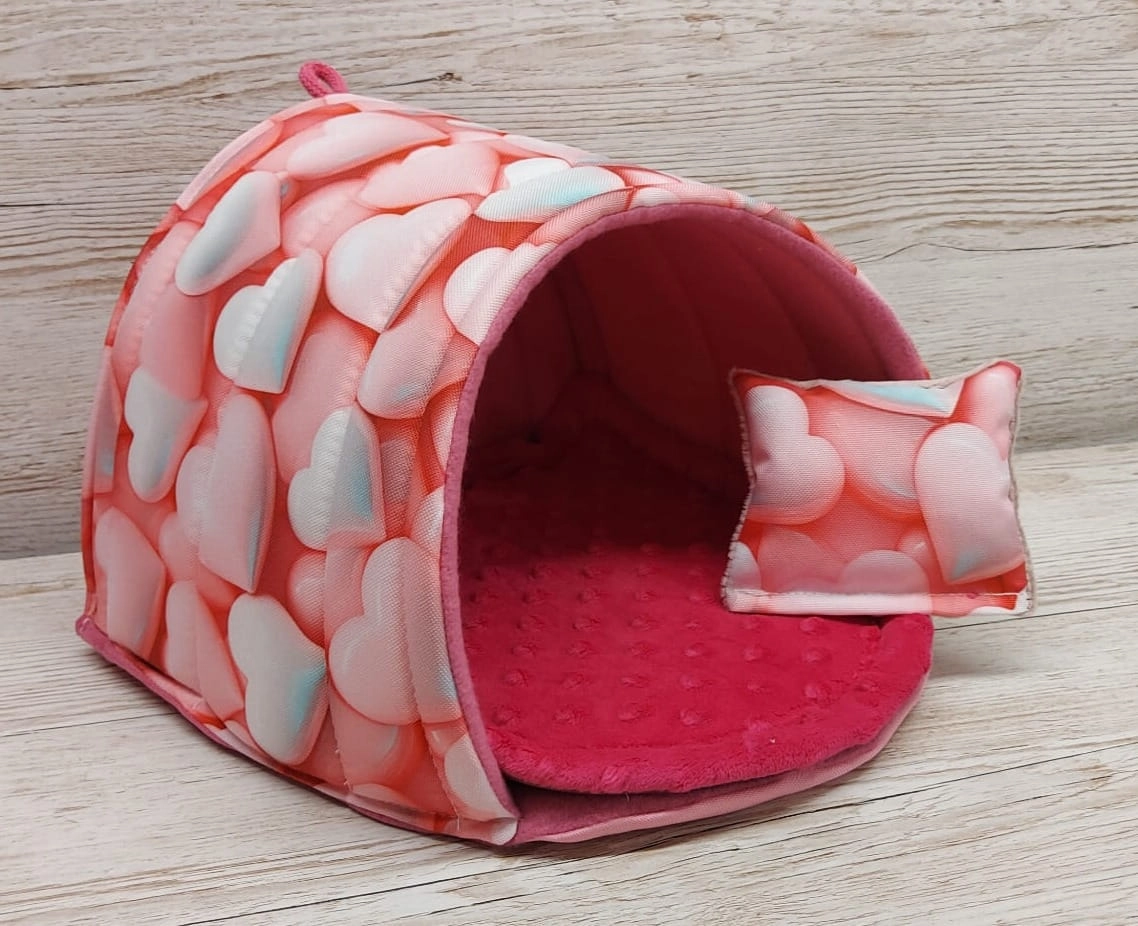 Legowisko-budka podkowa 25x25 ( 2 sztuki) - bez progu wzór wodoodporny/minky serduszka róż 3D