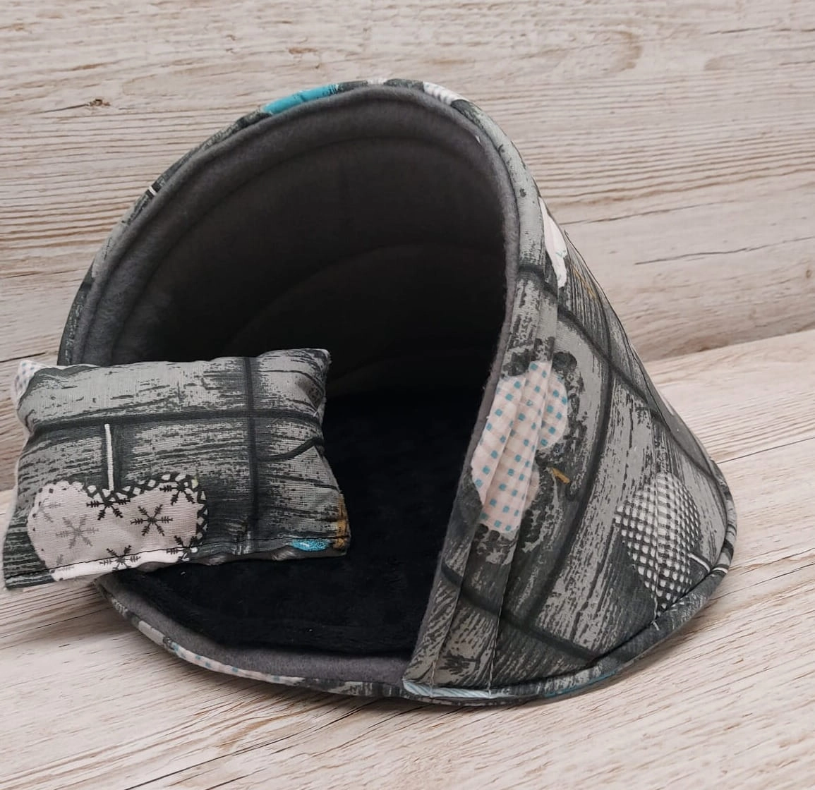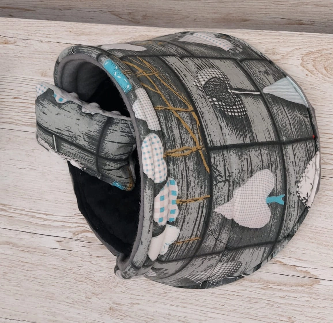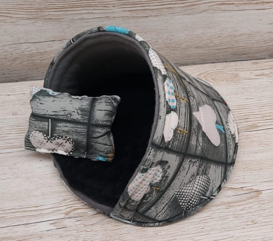 Premium czarne świnki! Domek - Muszla dla gryzoni, Świnki Morskiej, Bawełna serca niebieskie )